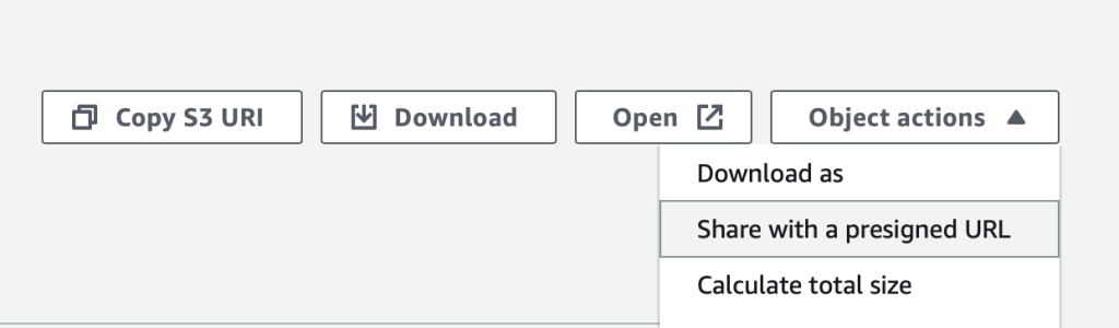 In AWS, S3 choose Object actions and Share with a presigned URL.