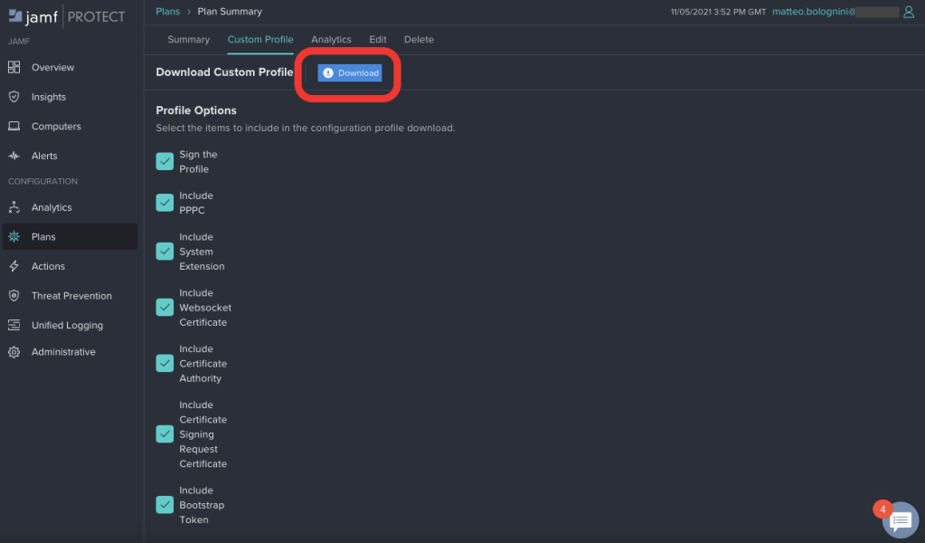 Next we’re gonna download a Configuration Profile for our Plan by clicking the “Download” button into the “Custom Profile” section.